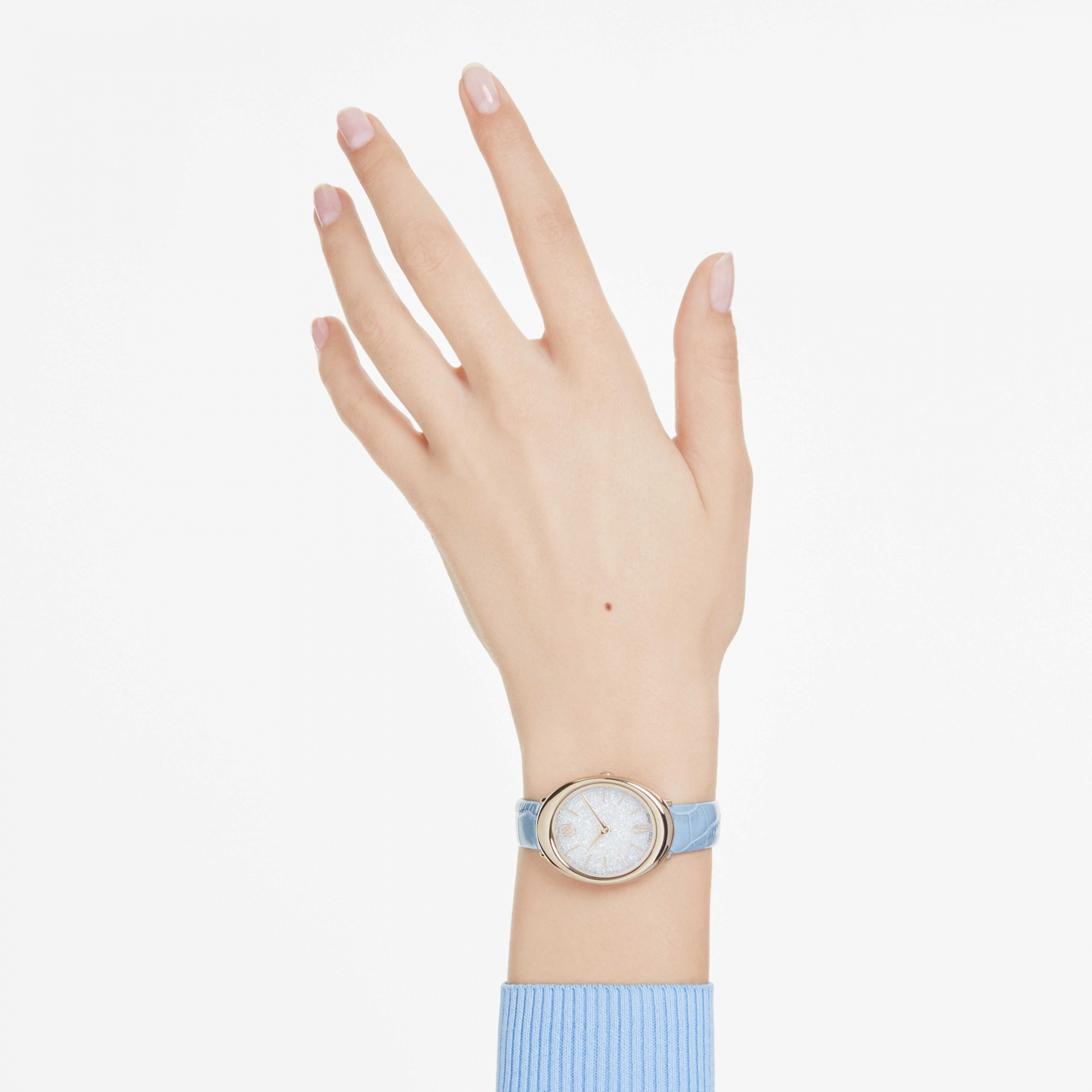 - Crystalline számlapján körülbelül 1000 átlátszó kristály található. A karcsú órajelek között 6 óránál egyetlen római szám látható, míg 12 óránál a Swarovski ikonikus hattyúja.